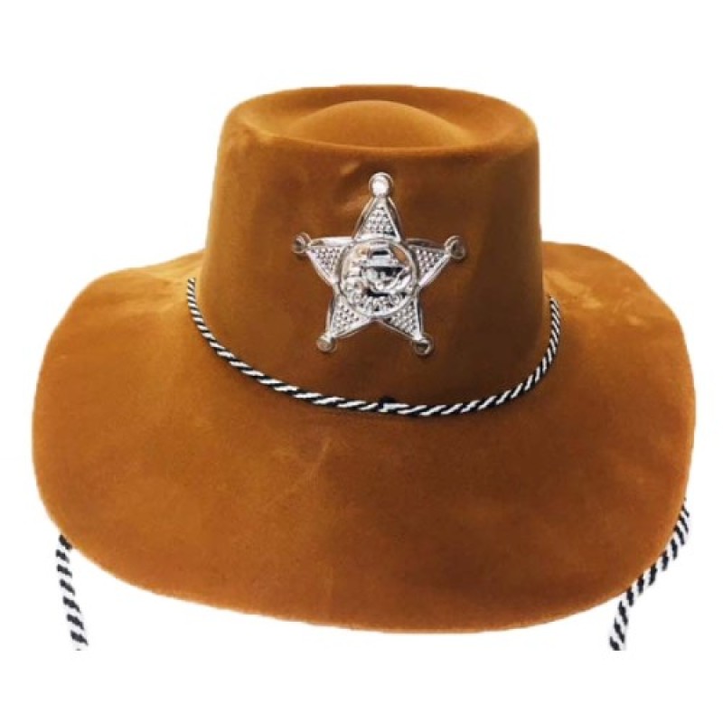 1 adet plastik kovboy şapkası nubuk kaplama kahve